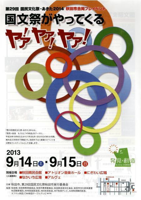 - 問合せ:第29回国民文化祭秋田市実行委員会事務局