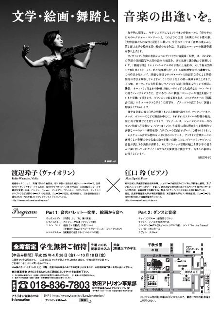 - 出演:渡辺玲子(ヴァイオリン)、江口玲(ピアノ)
