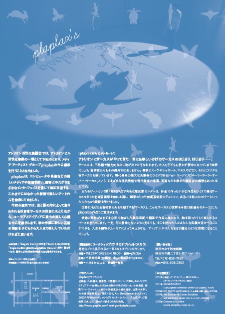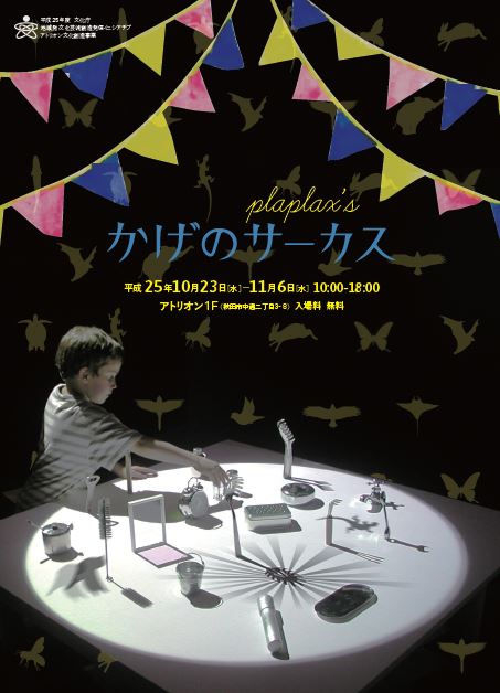 アトリオン文化創造事業 plaplax’s「かげのサーカス」 期間:2013年10月23日 ~ 2013年11月06日 会 期:10月23日(水)~11月6日(水) 会 場:アトリオンビル 1F 出会いの広場 料 金:無料 主 催:アトリオン活性化協議会