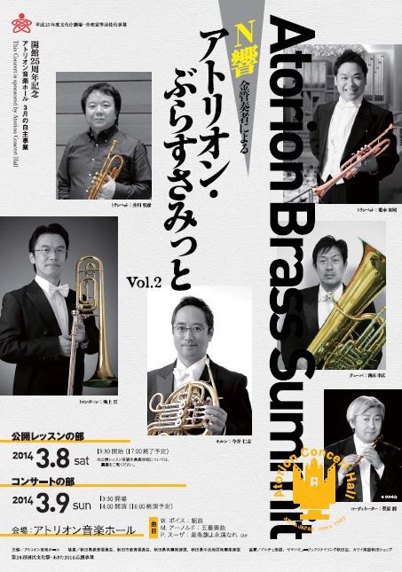 日本を代表するN響金管セクションプレイヤー5名による公開レッスンの受講生を募集します。