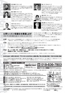 【公開レッスンの部】 3月8日(土)13:30開始(17:00終了予定)
