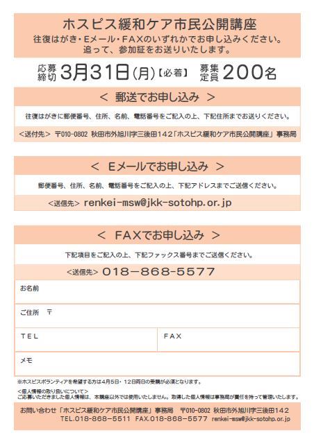外旭川病院ホスピス緩和ケア 市民公開講座