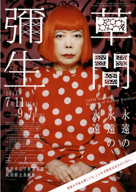特別講演会「草間彌生の世界」 期間:2014年07月12日 開催日:7月12日(土) 時 間:14:00~15:30 会 場:千秋美術館 3階 講堂 講 師:建畠 晢(京都市立芸術大学学長・埼玉県立近代美術館館長) 料 金:無料 定 員:80名 申 込:6月24日(火)より電話受付 申込先:千秋美術館 ☎018-836-7860