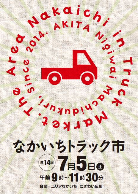 - ※7月26日・27日開催の「ナカイチ祭2」飲食・雑貨等出店者募集中。募集要項確認のうえ、お申し込みください。メール(ryo@akitabatake.com)またはトラック市会場スタッフまでご連絡ください。