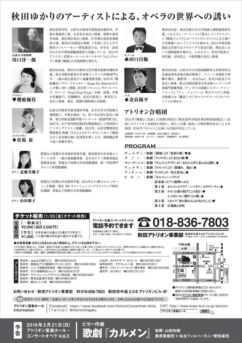アトリオン音楽ホール✴3月の秋田県主催事業