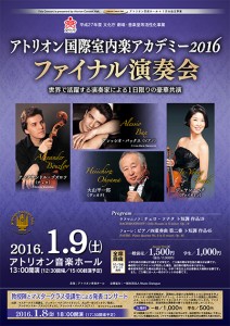 アトリオン国際室内アカデミー2016教授陣とマスタークラス受講生による発表コンサート 期間:2016年01月08日 開催日:1月8日(金) 時 間:開演18:00~(開場17:30~) 会 場:アトリオン 音楽ホール 料 金:一般1,000円 学生500円 問合せ:秋田アトリオン事業部 ☎︎018-836-7803