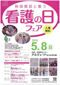 看護の日フェア 期間:2016年05月08日 開催日:5月8日(日) 時 間:10:00~ 会 場:アルヴェ きらめき広場 入場料:無料 問合せ:公益社団法人秋田県看護協会 ☎︎018-834-0172