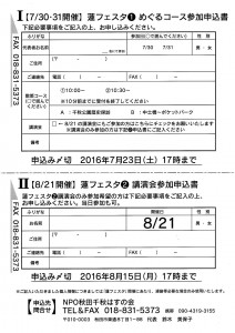 蓮フェスタ2016講演会 期間:2016年08月21日 講演会開催日:8月21日(日) 14:00~16:00会 場:にぎわい交流館AU 3F 多目的ホール 14:00~16:00参加無料・申込みは裏面FAX(締切8月21日) 内 容:蓮についての講演会(ハス茶試飲他) 講 師:蓮池再生委員会事務局長 印南 洋造氏(宇都宮在住) お問い合わせ先:NPO 秋田千秋はすの会 代表 鈴木美保子 ☎018-831-5373