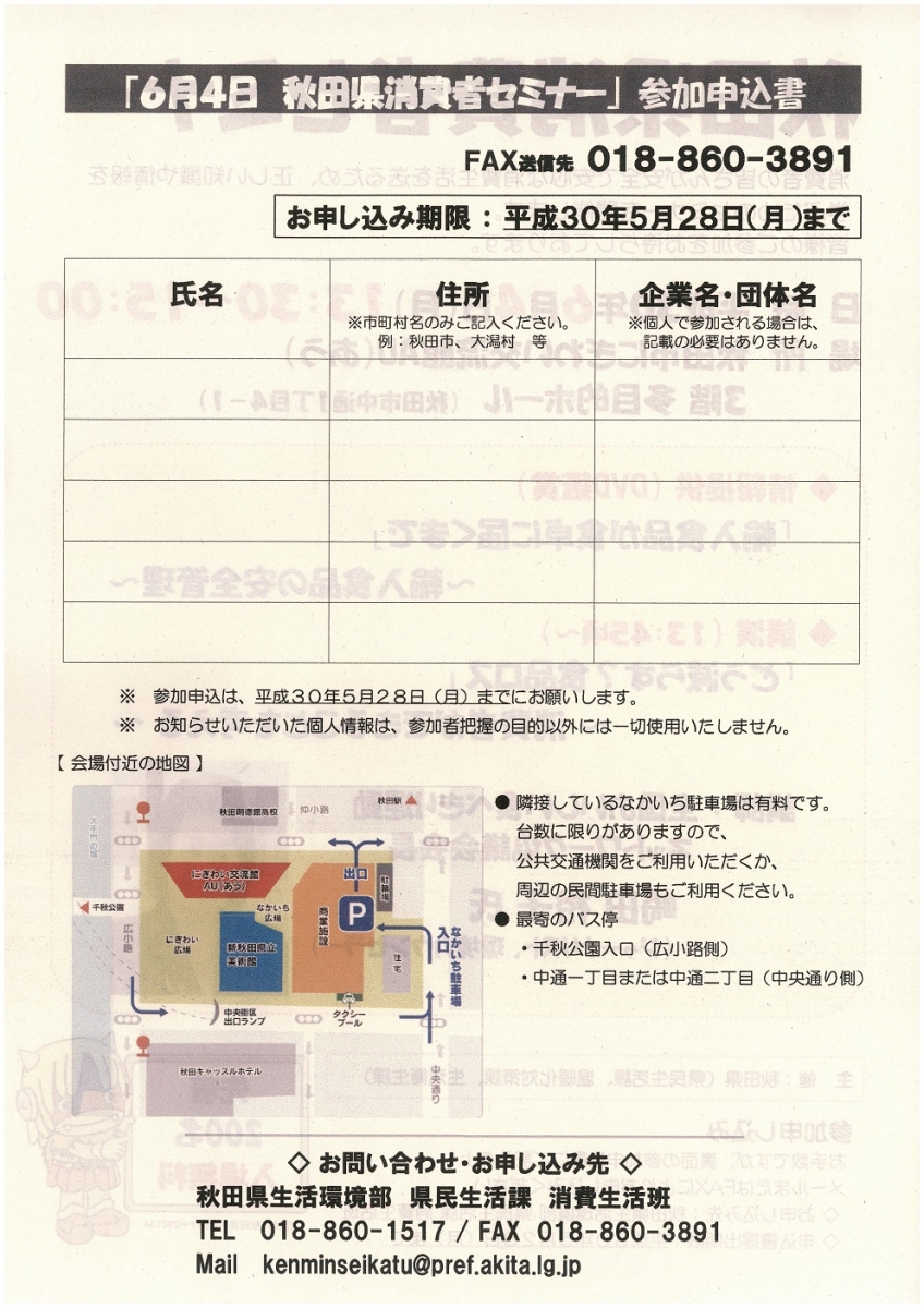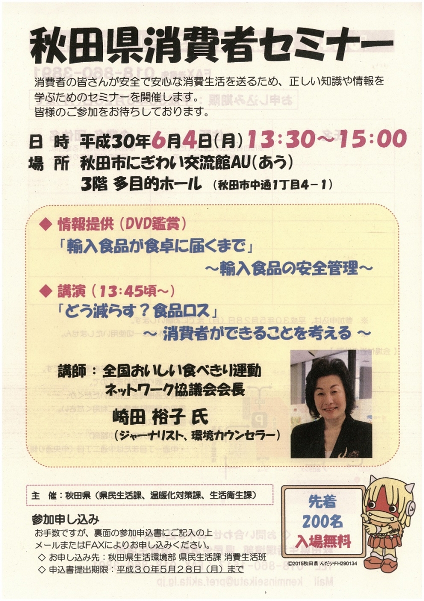 先着200名 - 問合せ:秋田県生活環境部 県民生活課 消費生活班