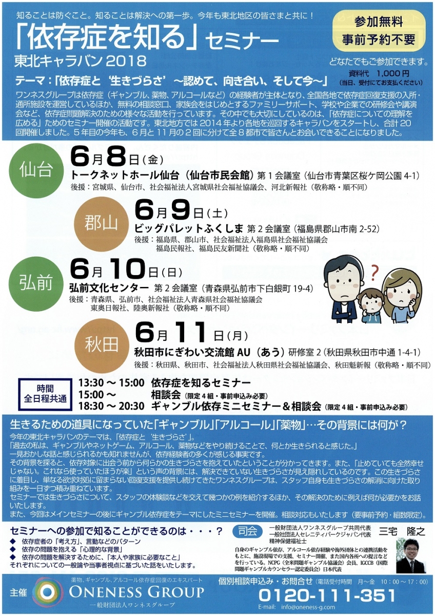 - 時 間:13:30~15:00 依存症を知るセミナー