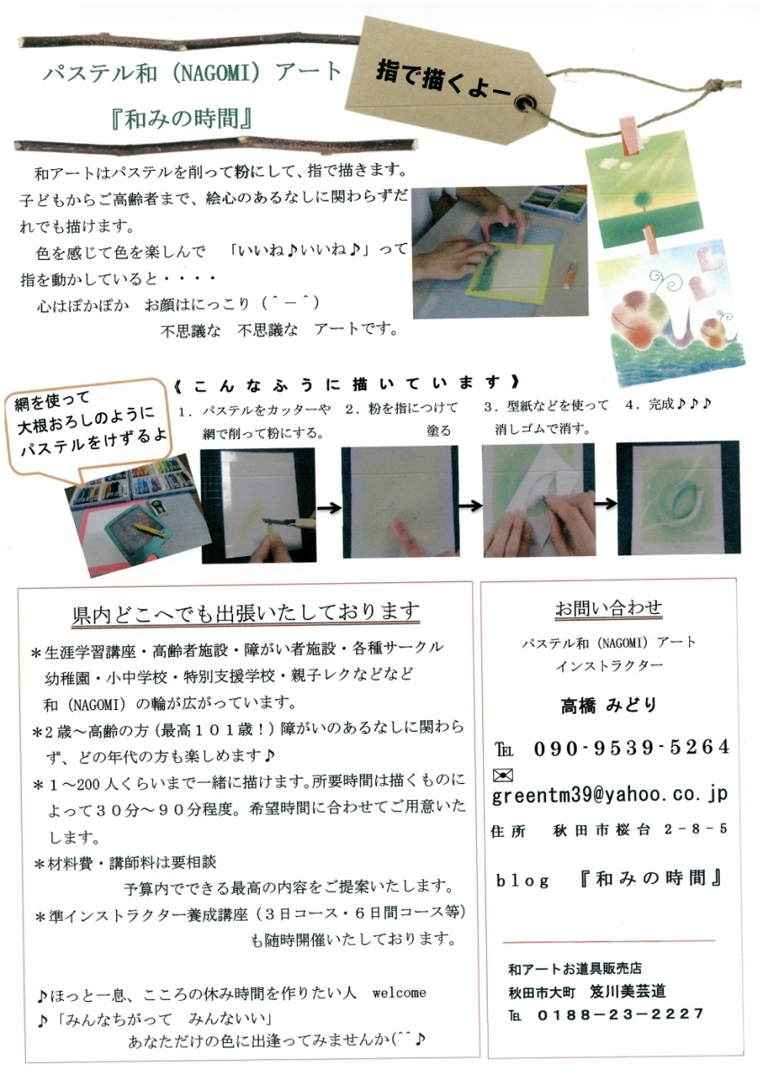 - 問合せ:パステル和(NAGOMI)アートインストラクター 高橋みどり