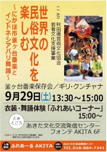 にかほ市の釜ヶ台番楽と世界文化遺産に登録されたバリ舞踊の共演ステージです。
