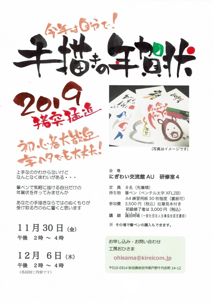 ※その場で筆ペンの購入もできます。 - 申込・問合せ:工房おひさま