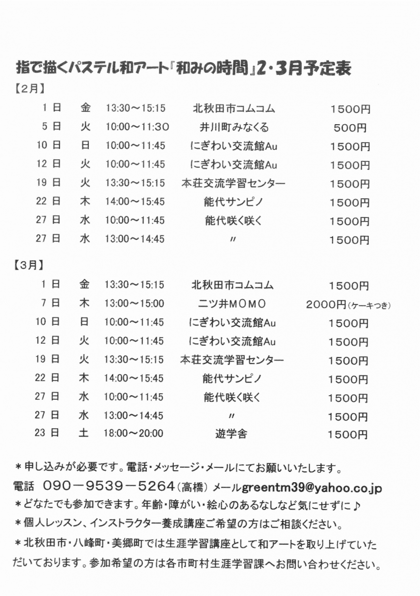 指で描くパステル和アート『和みの時間』2019年3月予定表