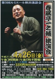 ルミエール秋田落語会 春風亭一之輔独演会 期間:2019年04月26日 前売券は完売しました。当日券の販売はおこないません。ありがとうございました。 開催日:2019年4月26日(金) 時 間:19時開演(18時半開場) 会 場:秋田拠点センターアルヴェ2階 ルミエール秋田 料 金:前売り券3,500円(当日4,000円)完売しました! 問合せ先:ルミエール秋田 TEL 018-884-7450