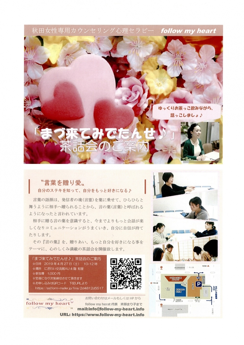 ※定員になり次第締切させていただきます - 問合せ:follow my heart 代表 斉藤まりこまで