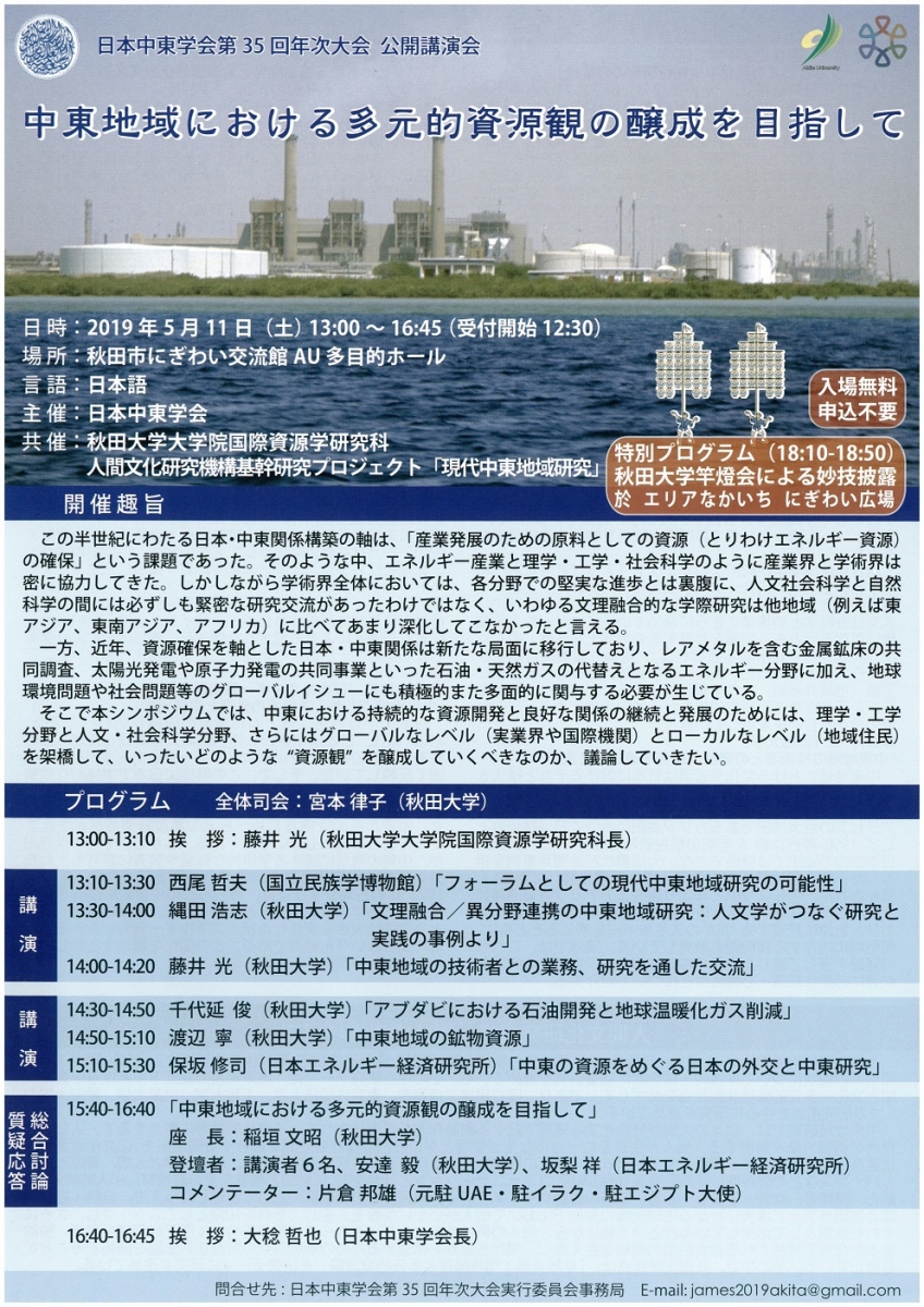 - 問合せ:日本中東学会第35回年次大会実行委員会事務局