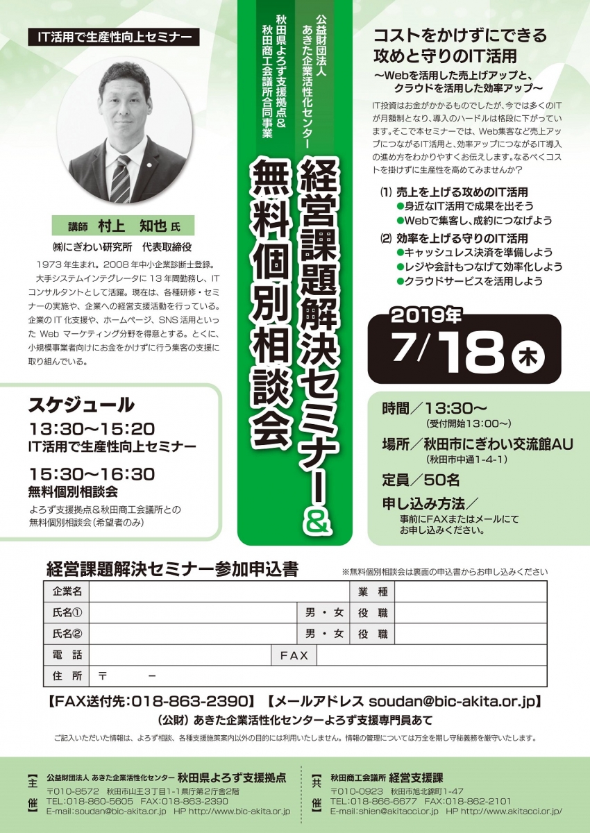 (1)IT活用で生産性向上セミナー 13:30~15:20