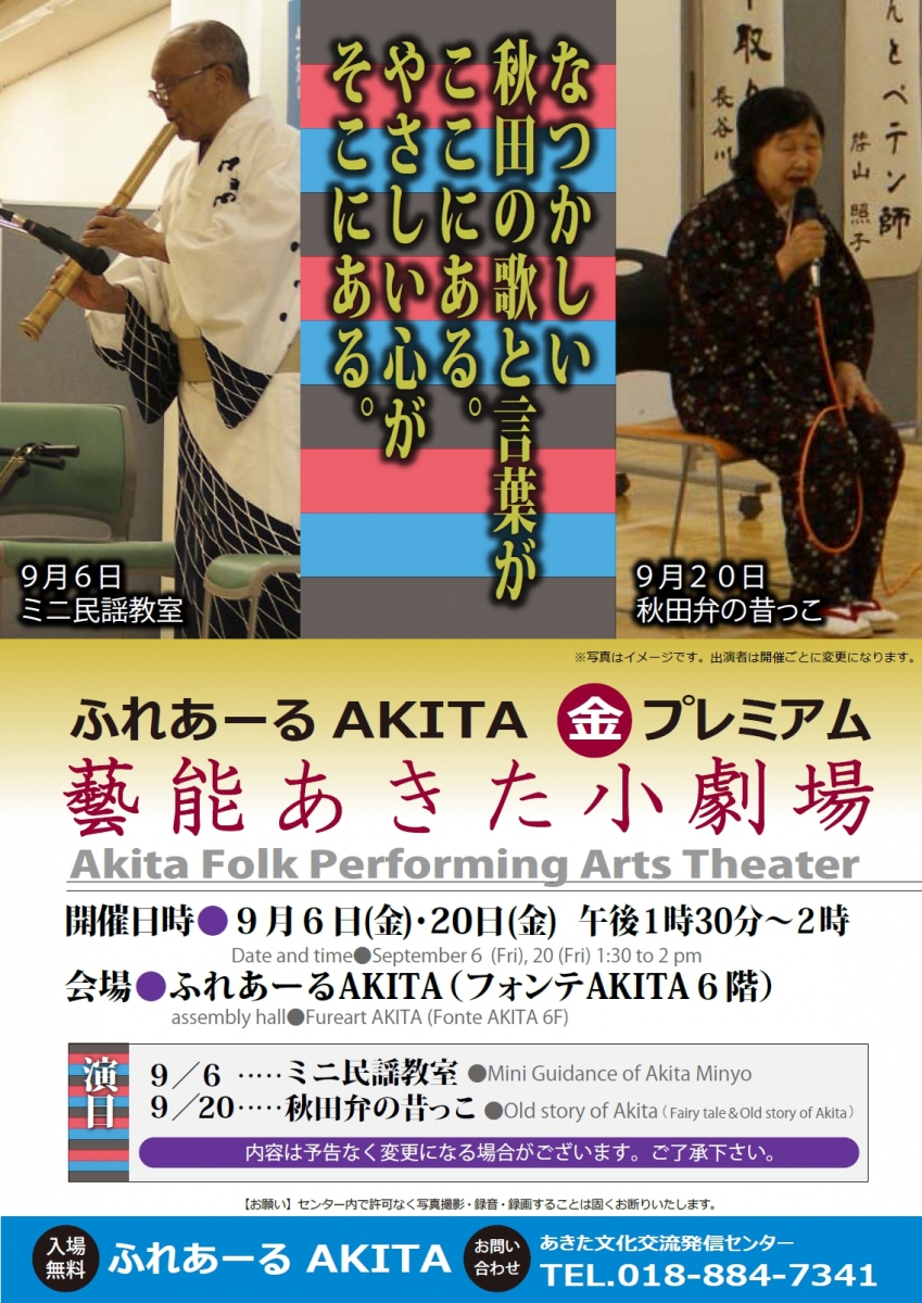 - 問合せ先:ふれあーるAKITA Tel 018-884-7341