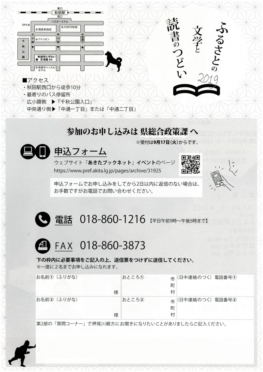 ※一度に2名までお申し込みになれます。 - 問合せ:秋田県企画振興部総合政策課