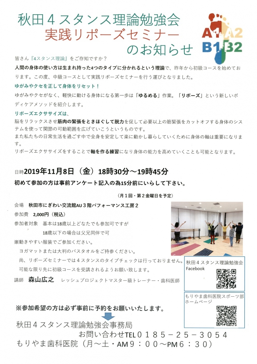 ※参加希望の方は必ず事前に予約をお願いいたします。 - 予約・問合せ:秋田4スタンス理論勉強会事務局