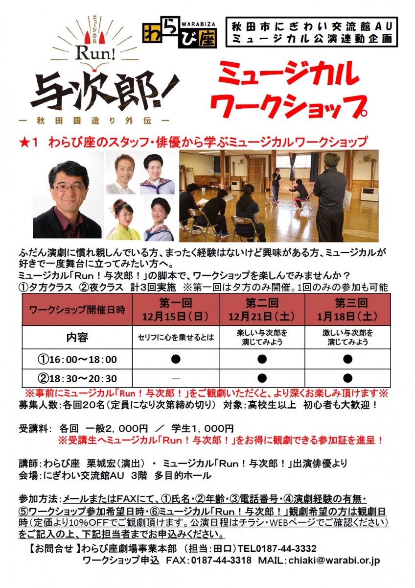ご確認ください)をご記入の上、下記担当者までお申し込みください。 - 問合せ:わらび座劇場事業本部 (担当:田口)TEL 0187-44-3332