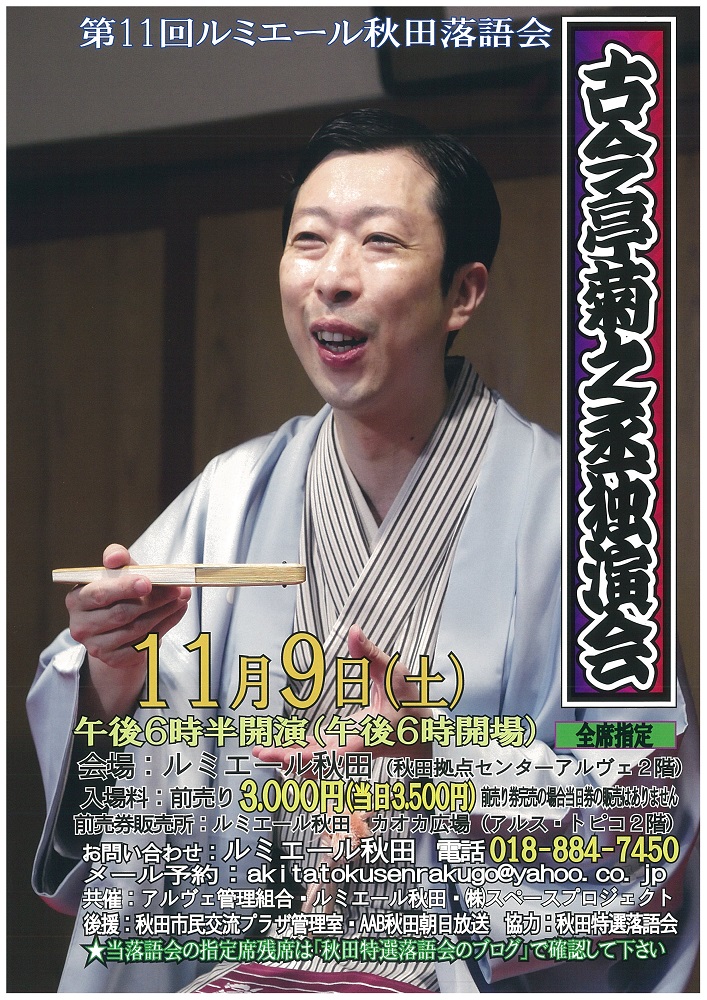秋田特選落語会のブログ http://blog.livedoor.jp/akitatokusenrakugo/