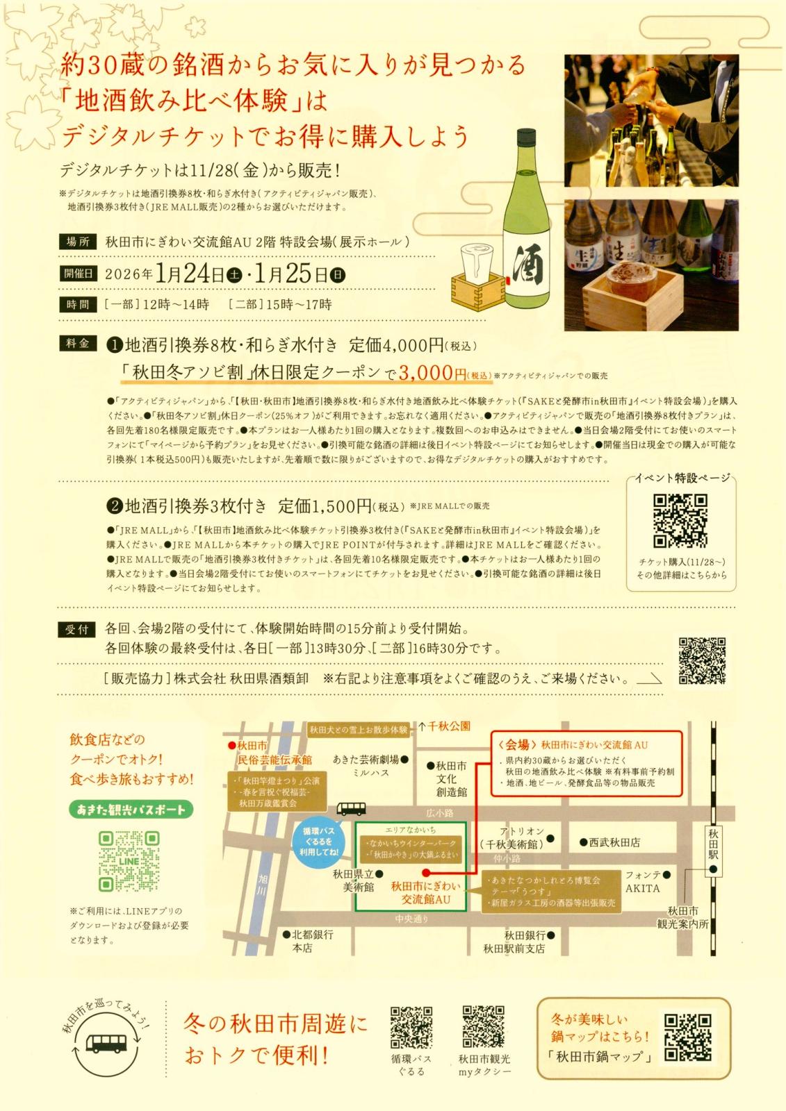 県内約30蔵の銘酒からお選びいただく秋田の地酒飲み比べ体験【有料事前予約制】