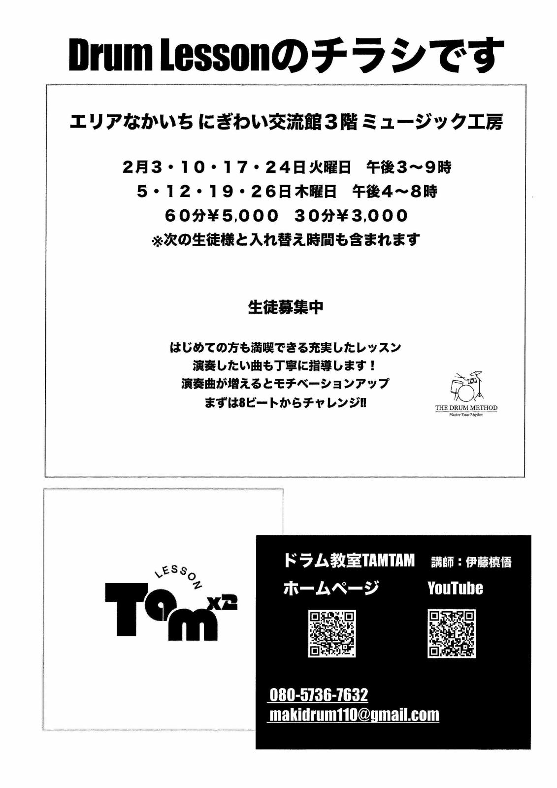 【木曜日】16:00~20:00 2月5日、12日、19日、26日 - 会 場:3階ミュージック工房2